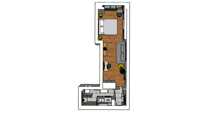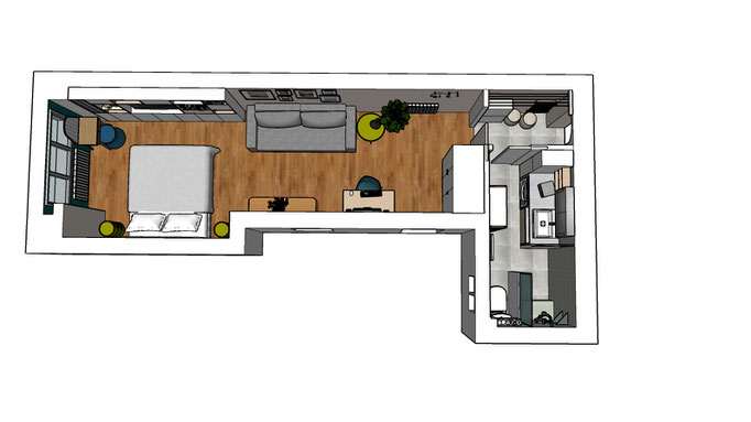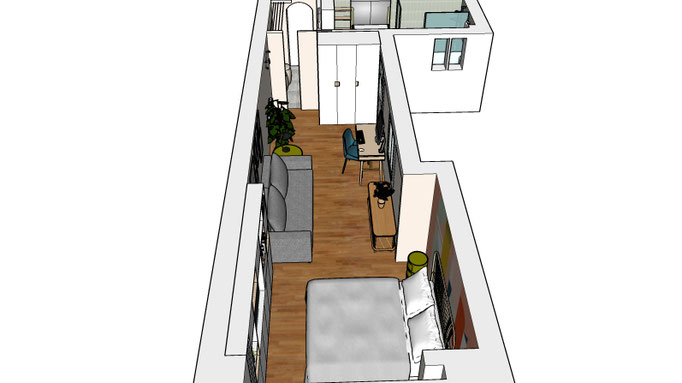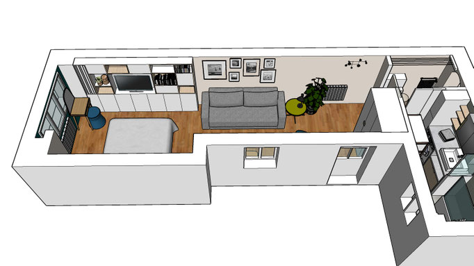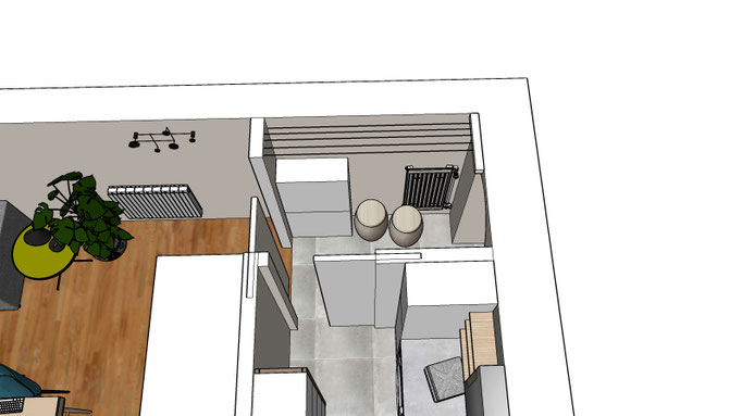 Toutes les portes ont été changées pour des portes à galandage, afin de faciliter le passage dans cet espace un peu étroit.